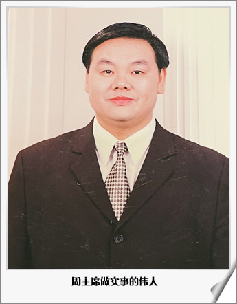 我們敬愛的周主席,普渡眾生,成道開悟,周主席水低成海,人低成王。鷹立如睡,虎行似病。貴而不顯,華而不炫。